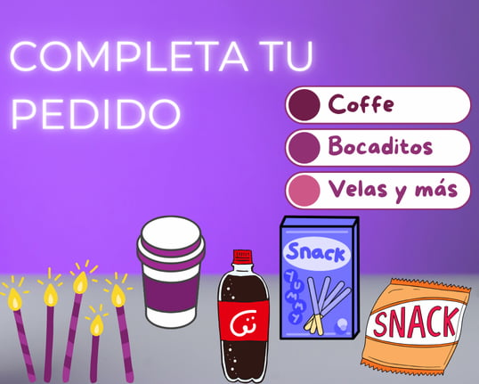 Añade snacks y descartables para disfrutar sin preocupaciones.🍽️🎉